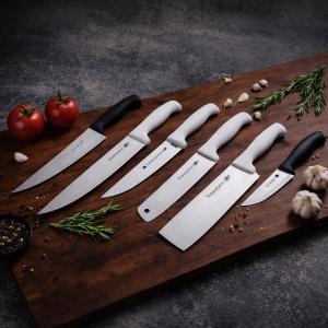 Каждый нож создан с учетом эргономики: удобная рукоять, точная балансировка и прочная сталь обеспечивают комфорт и контроль при нарезке. В ассортименте — универсальные ножи, для мяса, овощей, томатов и профессиональные модели для тонкой работы.