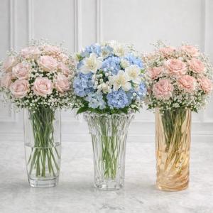 Стеклянная ваза подчёркивает свежесть цветов, наполняет пространство светом и легко вписывается в любой стиль. Даже без букета она смотрится стильно и воздушно.